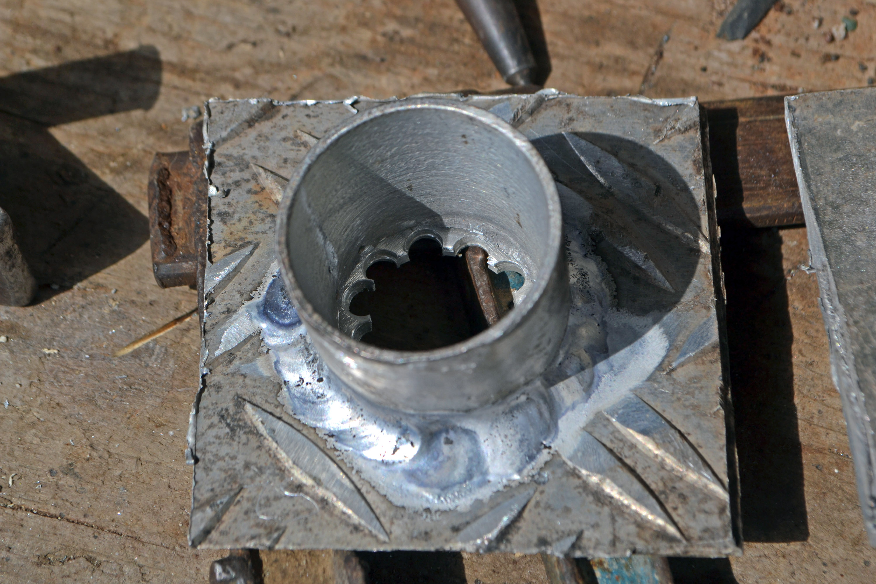 Intradevar nu este vorba de o sudura in sine ci mai degraba o lipitura asemanatoare cu cea facuta cu fludor, insa mult mai pretentioasa si dificila datorita temperaturilor mai mari necesare. Trebuie utilizat un arzator capabil sa incalzeasc relativ repede suprafetele, apoi putina dexteritate(sa ai mana..). Liptura este foarte rezistenta la forte si vibratii si am constatat ca se pileste destul de greu, deci confera o rezistenta buna.