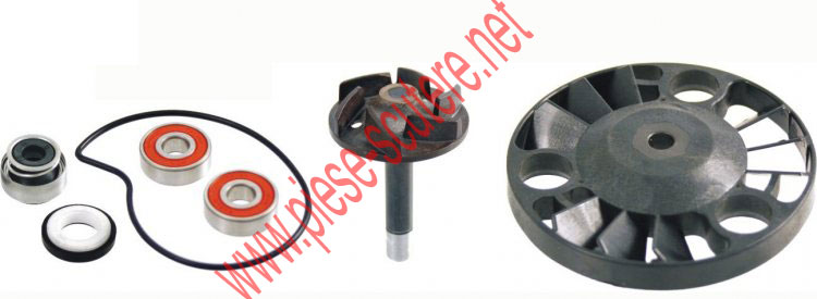 A ajuns si kitul complet pentru pompa de apa. Din vechea pompa se mai putea folosi doar axul, presetupa sparta, un rulment spart si celalalt gripat, fulia de cuplare pe rotor se invartea duios pe ax... si ma miram de ce se incinge asa repede...