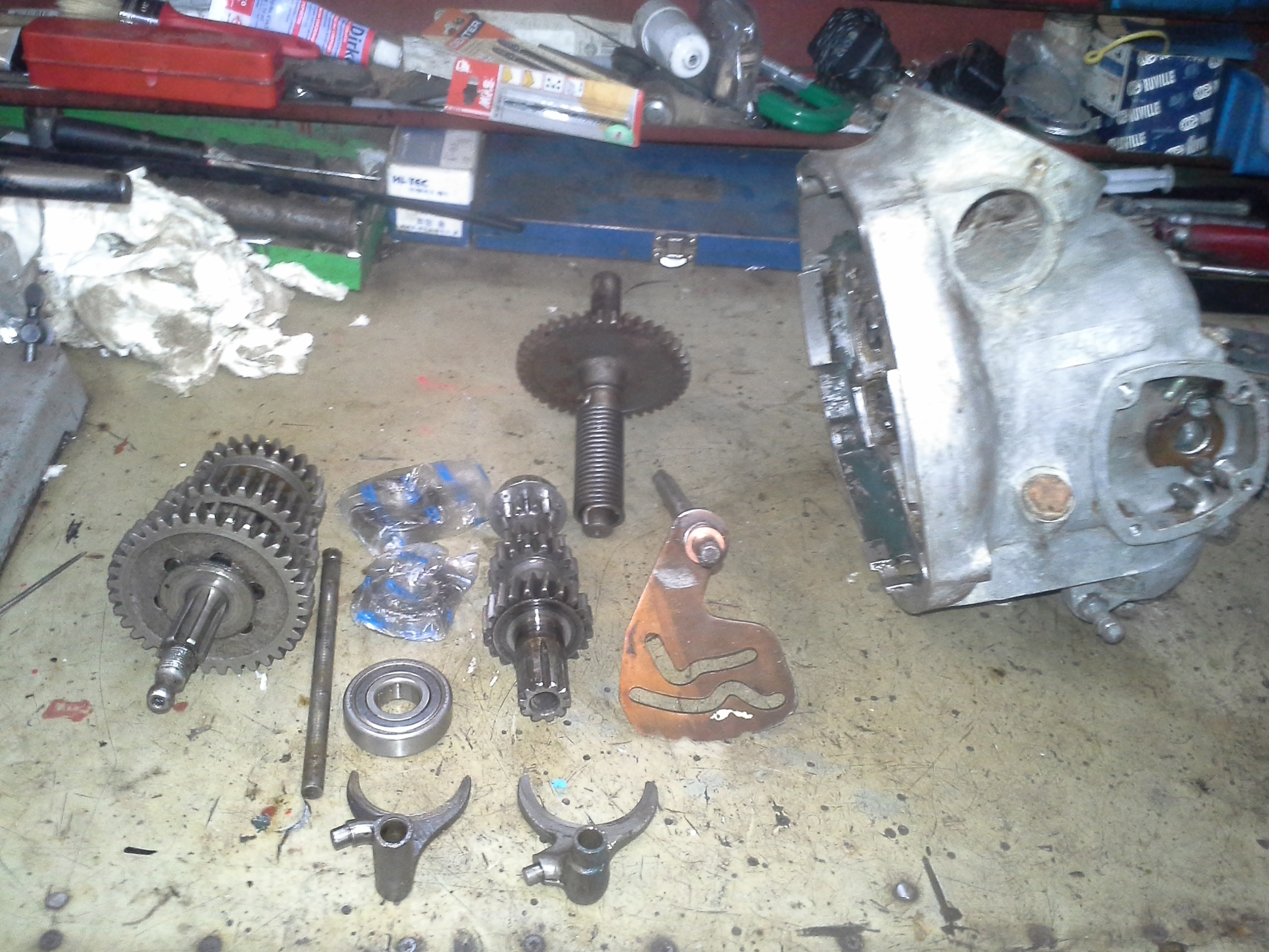 Am spalat piesele, am schimbat angrenajul de pornire, mansonul de cuplare si selectorul pt treptele 1-2, am luat simeringuri si rulmenti noi: