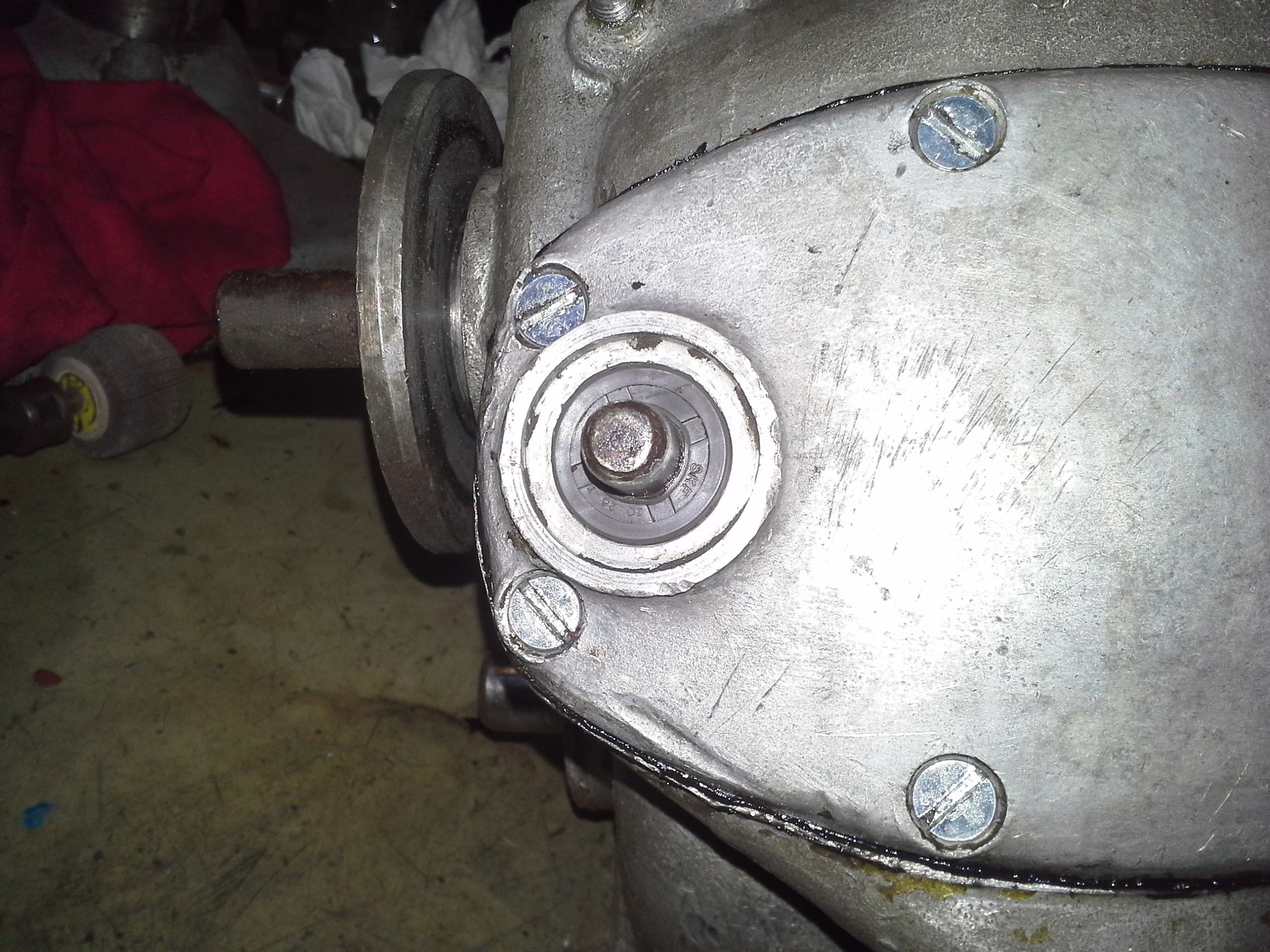 Am rectificat si flansa cardanului in zona unde etanseaza simeringul cutiei de viteze. La toate cutiile de M72 am gasit flansa uzata in zona de etansare: