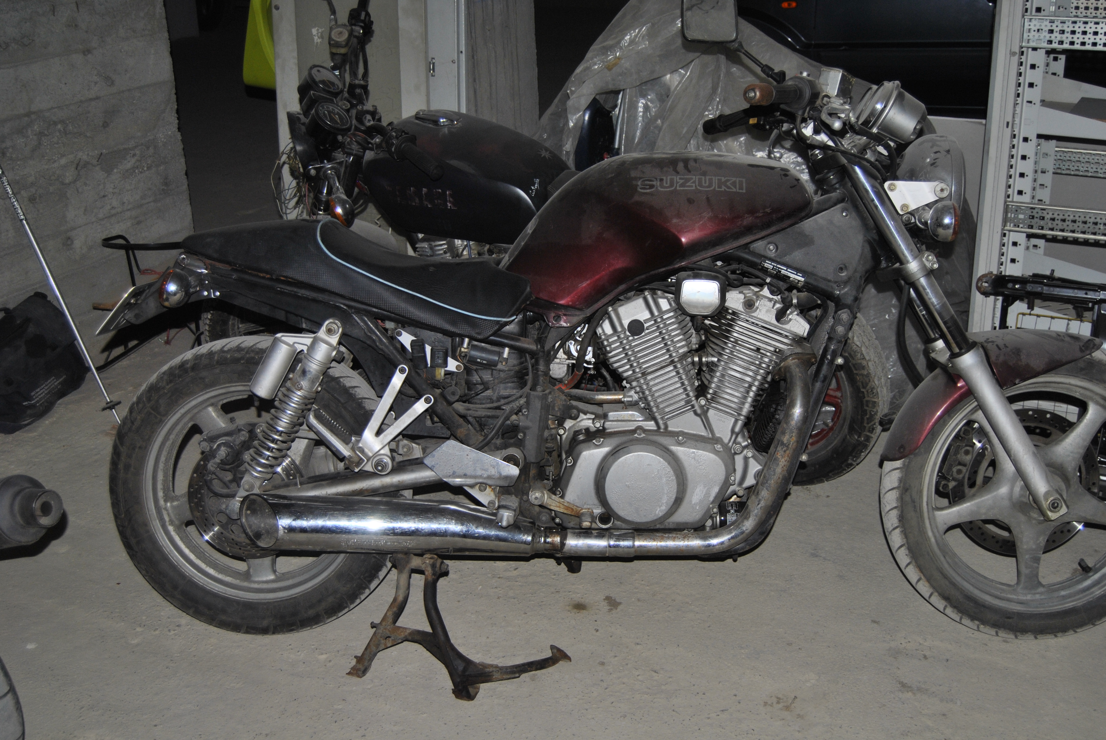 "Casa" treaca vremea cu folos, am facut rost de galerii de evacuare de Intruder VS800 ( thnx Clavi), trebuie sa soseasca si suportul pentru baterie tot de VS800, i-am gasit si niste oglinzi rotunde, clasice, cromate. Astept in continuare garnitura de la capacul pompei de apa si trebuie sa caut cablu de ambreiaj + manete de ambreiaj si frana.