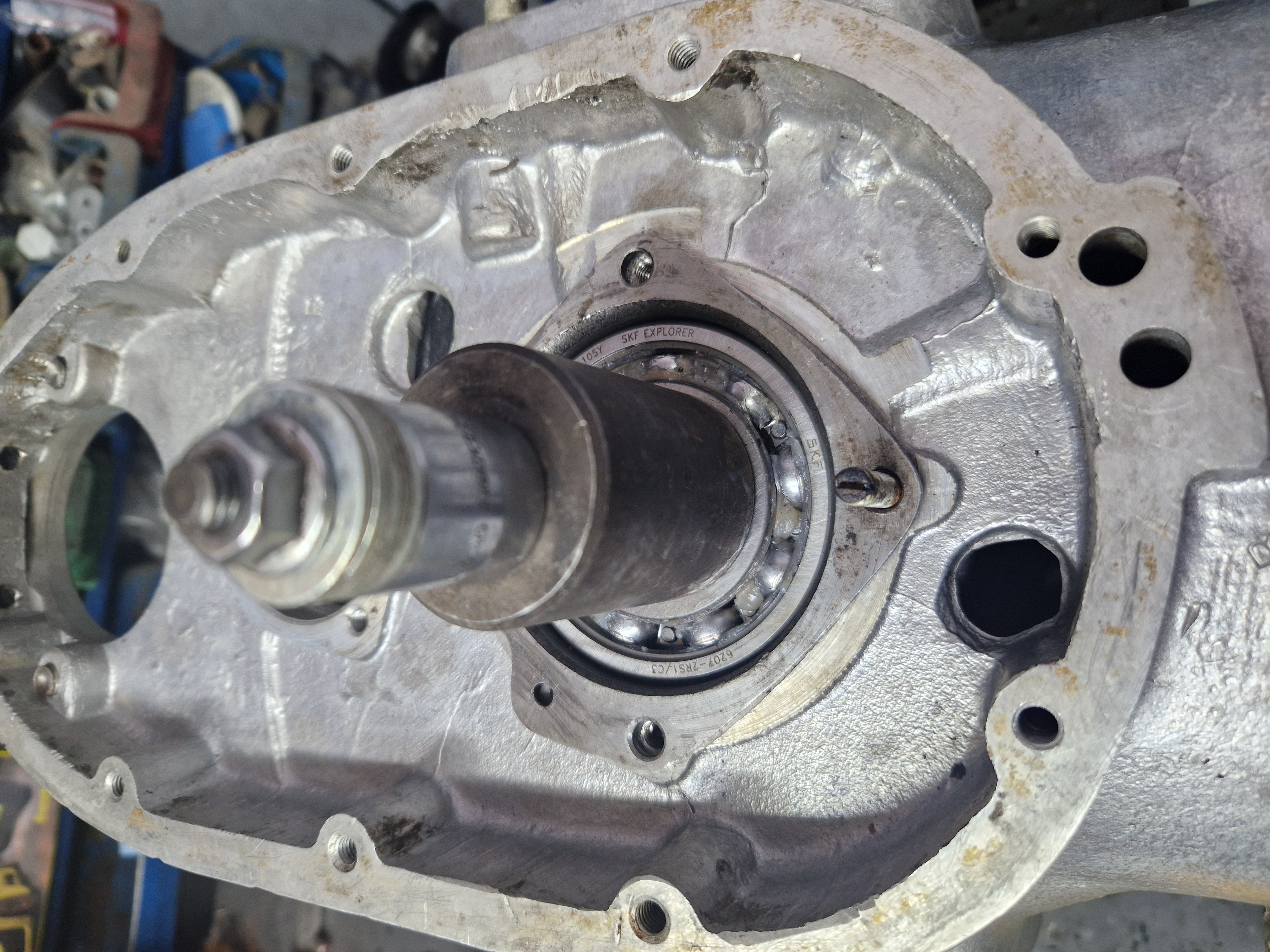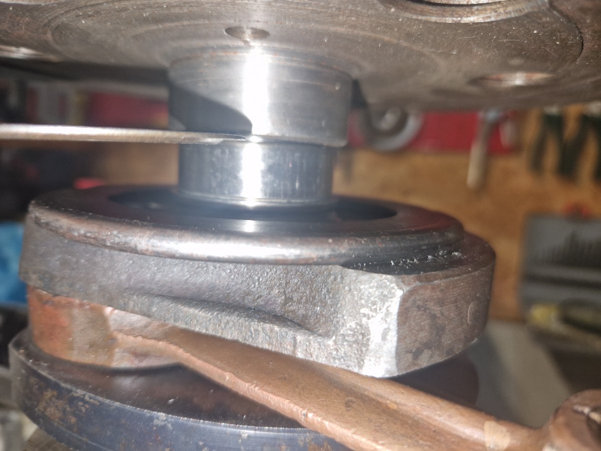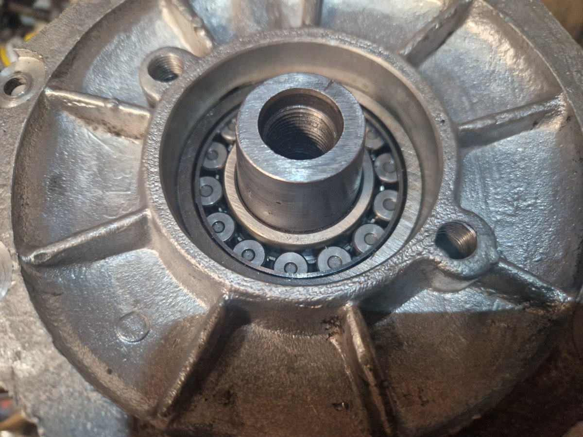 Deja a aparut prima problema dar partea buna este ca in acelasi timp am si rezolvarea ei. Problema a aparut din cauza faptului ca folosesc rulmentul NJ207 iar camasa interioarea a acestuia este mai lata cu cativa mm si nu-mi lasa loc pentru a utiliza deflectorul de ulei pentru simeringul de la volanta. Cand asez volantul pe arbore spatiul ramas intre volant si camasa interioara a rulmentului este prea mic.