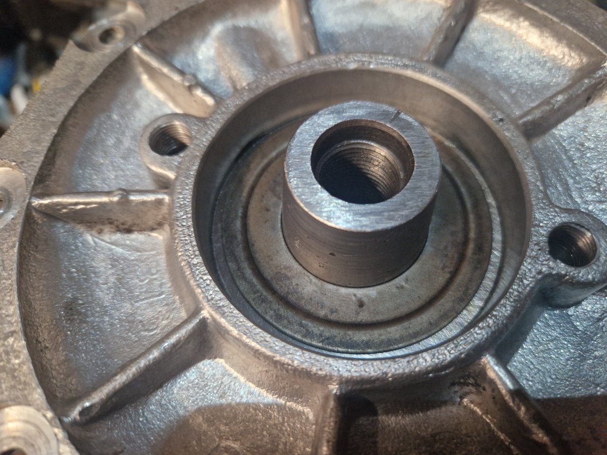 Am reusit sa adaug capacul palierului fata de la arbore. Nimic complicat dar apar si aici mici chitibusuri, trebuie avut grija la etansarea canalului de ulei care asigura ungerea pinioanelor de distributie si inaltimea umarului care are rol de opritor al rulmentului arborelui in cazul in care acesta se misca in palier cand apesi ambreiajul. A trebuit sa planez acest umar aproape o zecime ca se lipeasca capacul uniform pe palierul rulmentului fara sa se sprijine direct pe camasa exterioara a rulmentului:
