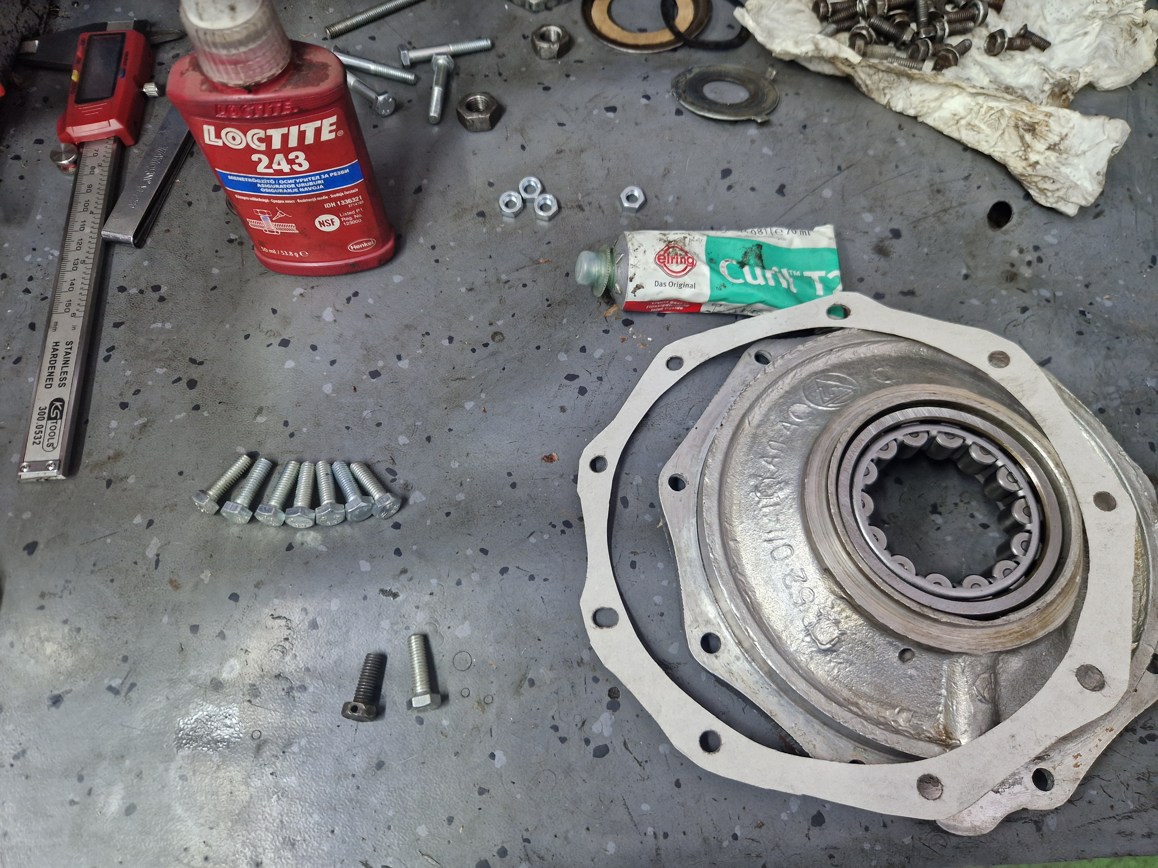 Pentru palierul spate am facut garnitura dintr-un carton de calitate, am si garnitura "originala di pi stoc" dar calitatea ei e slaba avand materialul permeabil. Pentru etansare am folosit Curil, tubul verde.