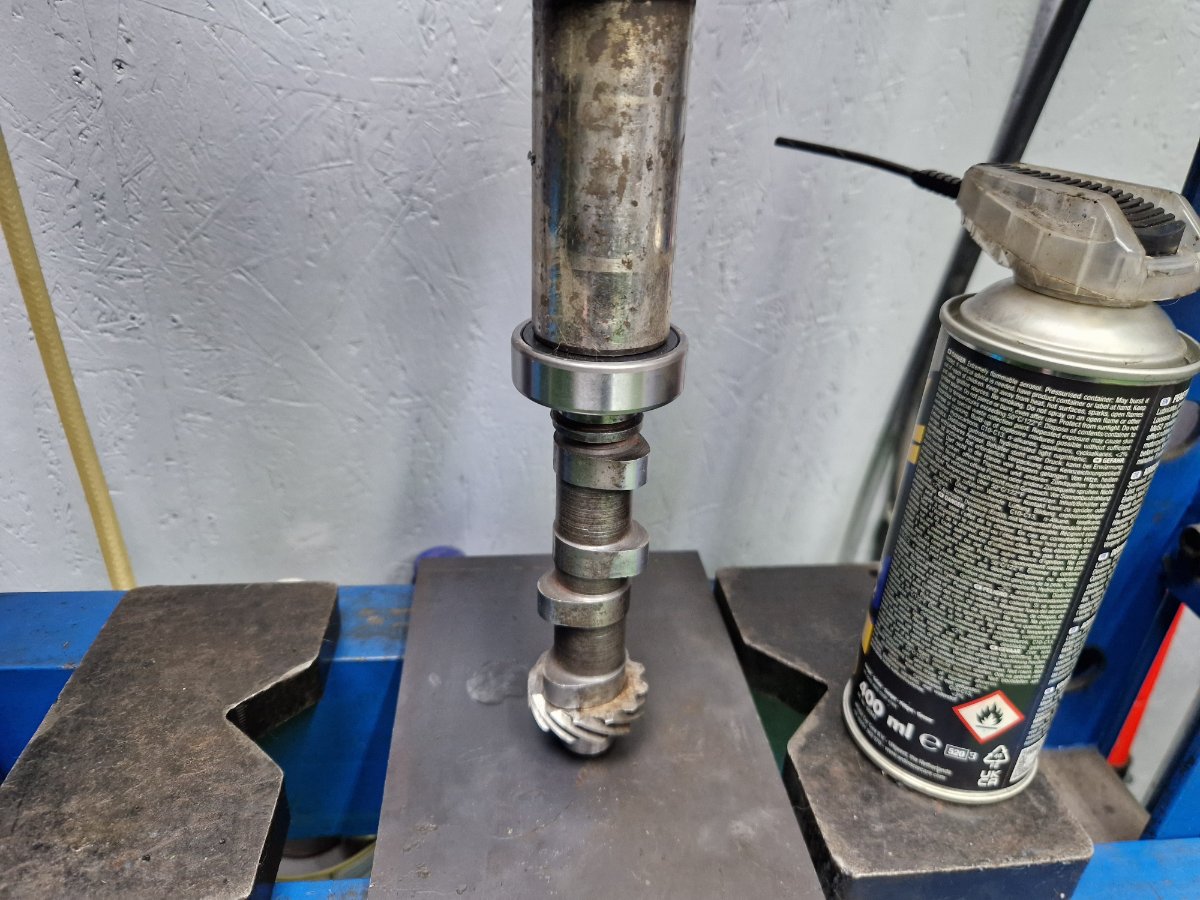 Dupa aceea am "inventat" o presa si am tras ambielajul in rulmentul palierului: