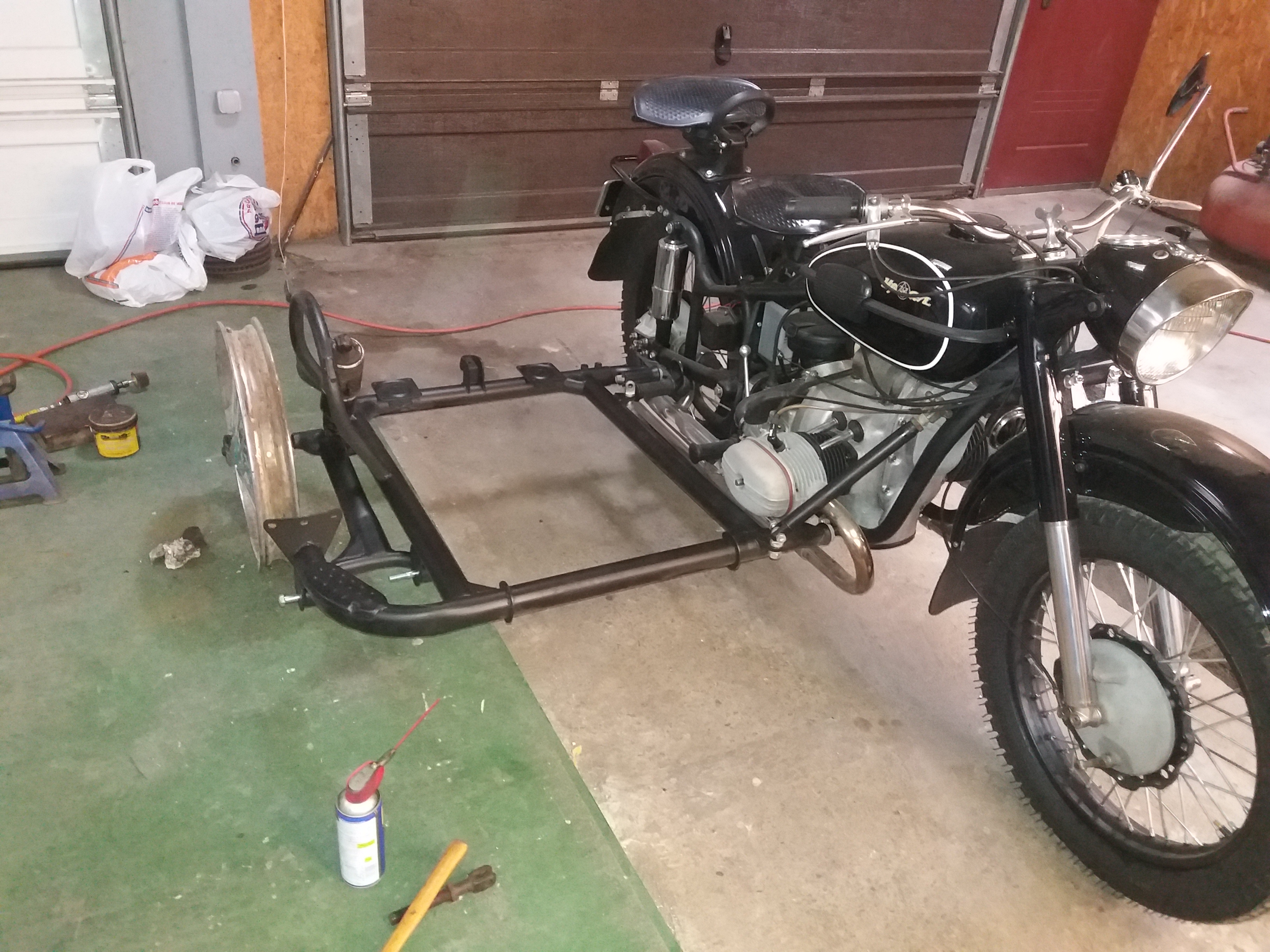 Mai am sa trag instalatia electrica pt atas, niste chestii minore la parte de prindere a tampoanelor de atas si sa la partea de amortizor (am pus un amortizor de Dnepr pt moment).