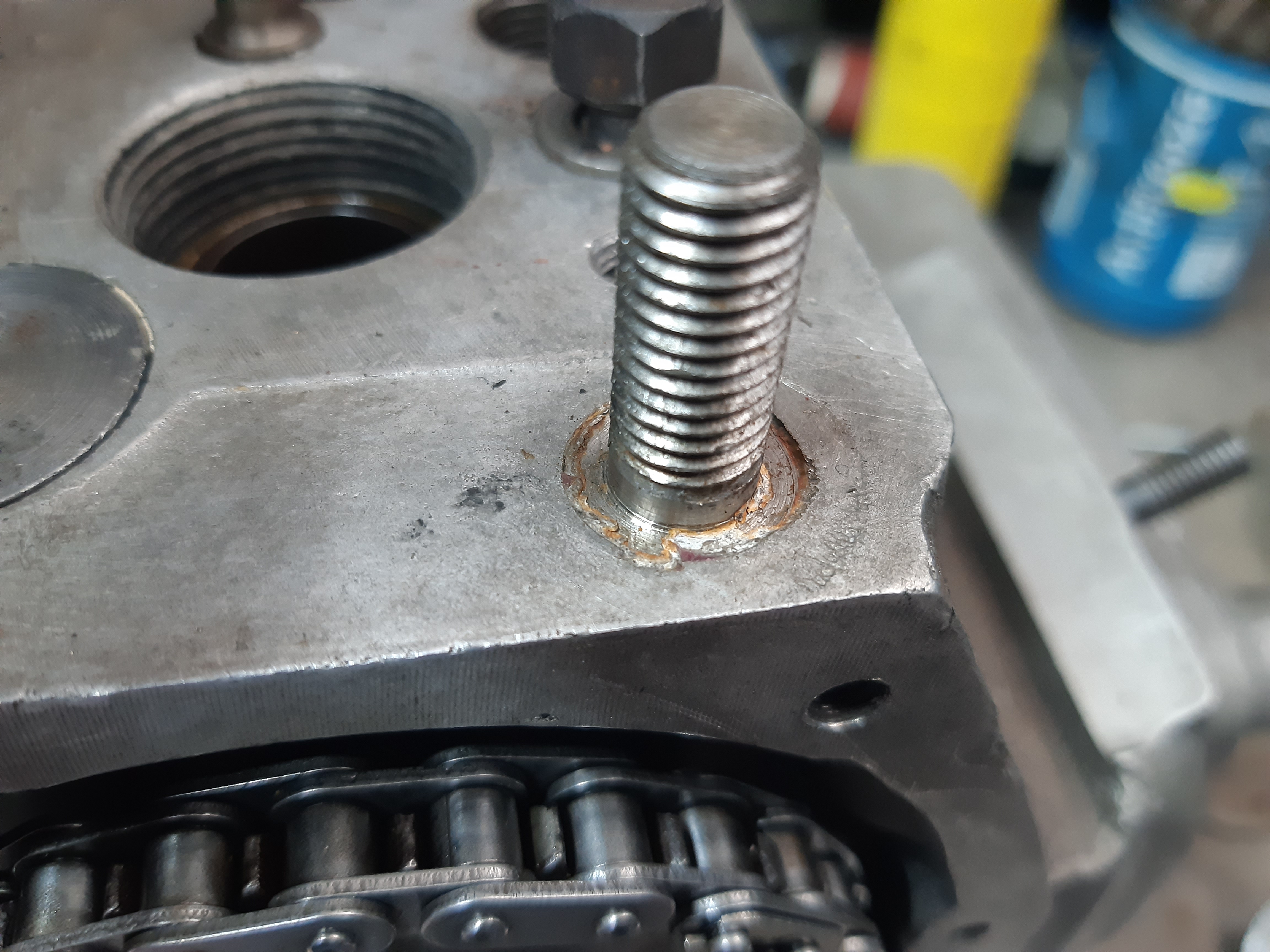 Intre timp am renuntat la folosirea blocului motor care era pe motocicleta si a fost cumparat un bloc motor tot din 1938 care astfel se imperecheaza cu cadrul care este tot din 1938. Problema e ca aceste bloc a venit cu niste probleme specifice pentru vechimea lui si chiar a exploatarii defectuoase din trecut. Astfel gaurile pentru prezoanele din fata care fixeaza blocul motor erau stricate si ovalizate, o gaura laterala in care se fixeaza capacul lateral pentru cutia de scule era sparta, filet stricat la prezonul de prindere al dinamului.